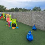 Kertünkből leválasztottunk egy közel 300 nm-es részt, ami csak a bölcsisek birodalma, felszerelve azokkal játékokkal ami e korosztálynak a legmegfelelőbb játékkészlet.